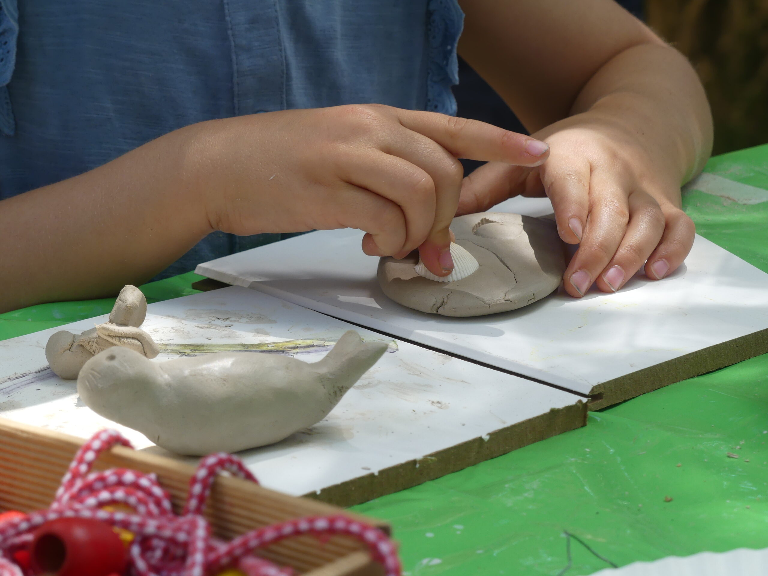 - Der Kirchentag für Groß und Klein startet mit einer freien Ankommens-Stunde, in der das Gelände erkundet, gespielt und Kaffee getrunken werden kann. Das Programm beginnt eine Stunde später mit einem Gottesdienst für Groß und Klein auf der Wiese vor dem Gemeindehaus. Die Teilnehmenden suchen sich dazu mit ihren Picknickdecken, die von zu Hause mitgebracht wurden, einen Platz auf der Wiese. Kernstück des Gottesdienstes ist das Theaterstück zum zweiten Schöpfungsbericht, verbunden mit der Frage, was passiert, wenn die Menschen die Schöpfung nicht nur bewahren, sondern auch ausbeuten.